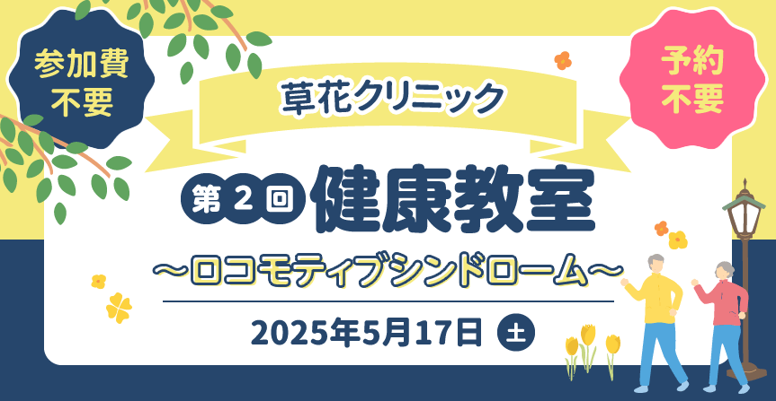 第1回・2回と大盛況だった「ロコモティブシンドローム(要支援や要介護になる一歩手前の状態)」がテーマの健康教室を、今年も行います。 今回もロコモティブシンドロー…
