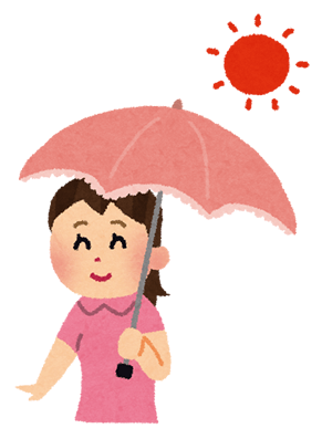 外出する場合はできるだけ日陰を選んで歩いたり、日傘をさしたり帽子をかぶったりして直射日光を防ぎましょう。