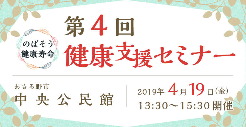 あきる野市「中央公民館」にて、下記の日程で「健康支援セミナー」を開催いたします。
