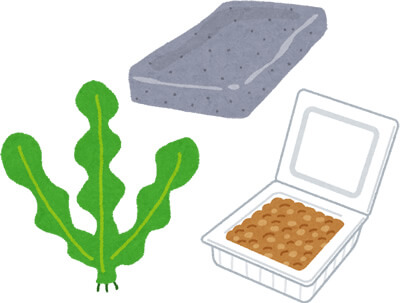 水溶性食物繊維を多く含んでいるものには、大麦や納豆、海藻やこんにゃく、熟した果物などがあります。