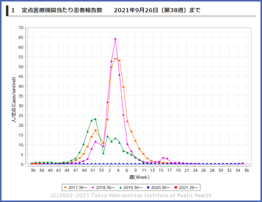 昨年は流行の規模が小さかったことから感染者も少なく、集団免疫が形成されていないと考えられるため、2021年~2022年シーズンは、インフルエンザが流行する可能性が高くなっています。