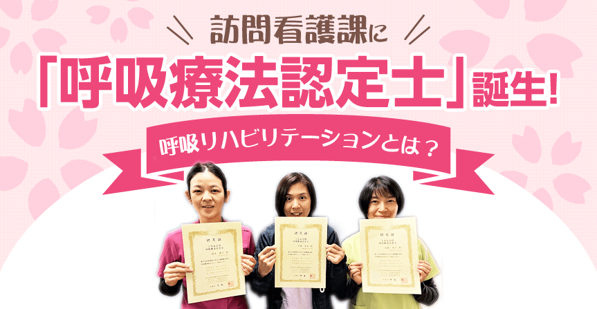 今回は、この「呼吸療法認定士」と、訪問看護課の業務に深く関わりのある「呼吸リハビリテーション」について、それぞれ紹介いたします。