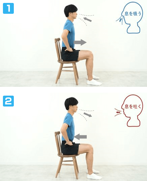 - 息を吐く時に背中が丸くならないように注意しましょう。
