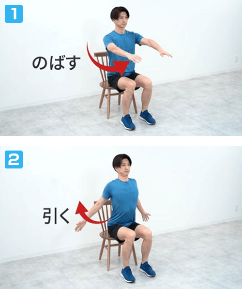 - 息を吸いながら胸を張ることで、より大きい動きをしやすくなります。