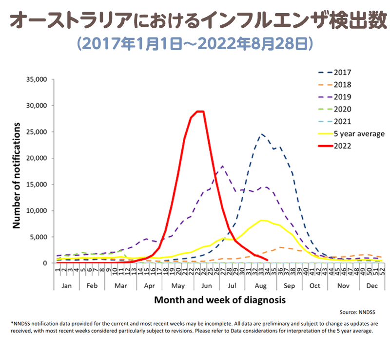 2022年、オーストラリアでは4月後半から報告数が増加し、例年を超える患者数になりました。