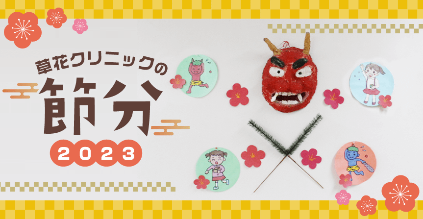 草花クリニック病棟看護課では少しでも季節感を感じていただこうと、2月3日「節分の日」に入院患者さまと共に豆まきとレクレーションを行いました。