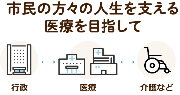 行政や介護など多職種との連携を行いながら、市民の方々の人生を支える医療の展開を目指しております。