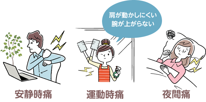 ケガなどをした訳ではないのに、「肩が痛い」「腕が上がらない」といった症状が出ることがあります。