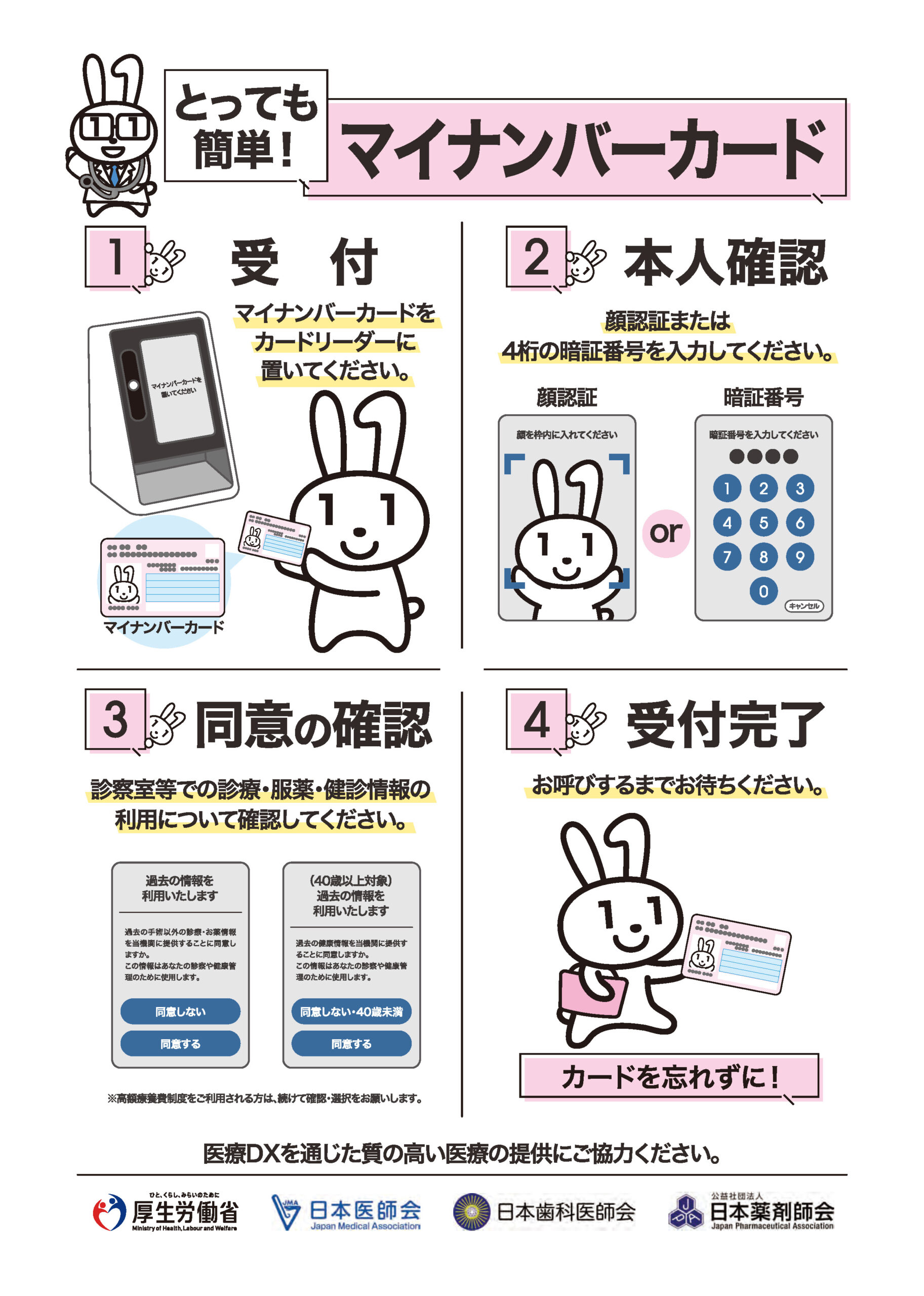 マイナンバーカードでの受付の方法については、以下よりご確認いただけます。