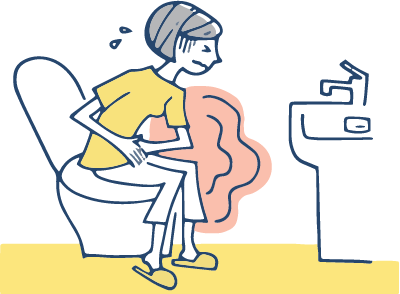 痛みを伴うため排便を避けてしまう方がいらっしゃいますが、便を我慢することも便秘の原因に。お薬や生活習慣の改善で改善できますので、お早めにご相談ください。