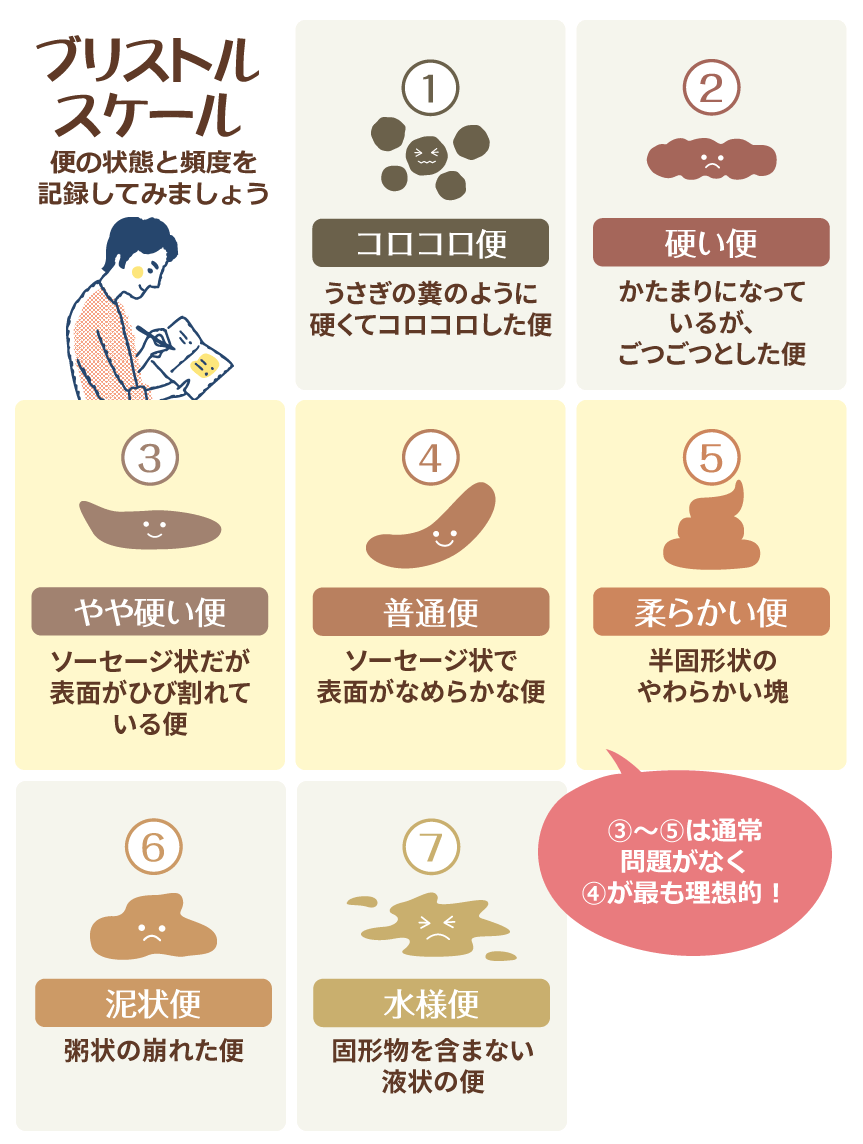 便の状態はブリストルスケールを参考に記録することがおすすめです。