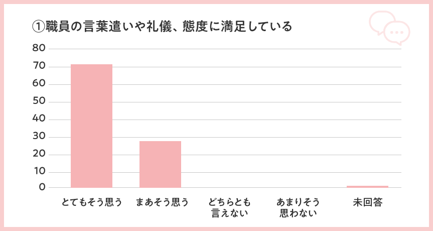 全項目で「まあそう思う」「とてもそう思う」のプラスイメージ評価が97%以上と、昨年以上の高評価を頂けましたことを大変嬉しく思います。今後も、より一層、質の維持・向上に努めて参ります。