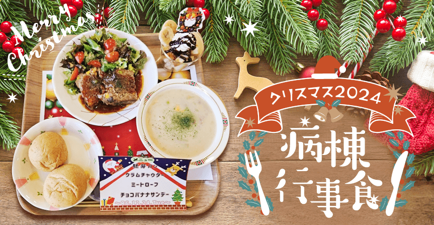 今回は入院中の患者さまと当院の職員へ12月24日の昼食に提供した「クリスマス特別メニュー」をご紹介いたします。
