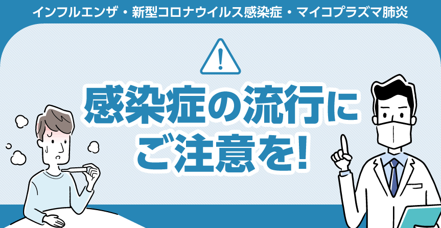 今回は、今流行している感染症として、インフルエンザ、新型コロナウイルス感染症、マイコプラズマ肺炎をご紹介しました。