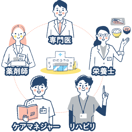 緊急時に適切な医療を受けられるよう、専門医をはじめ、薬剤師、栄養士、ケアマネジャー、リハビリなどの職種とも連携できる診療所・クリニックを選ぶこともポイントです。