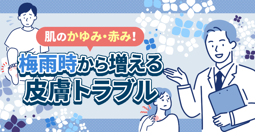 梅雨どきの皮膚トラブルは、ちょっとした対策と早めの受診で、ぐんと楽になります。