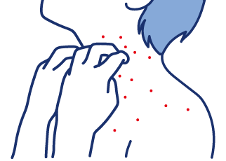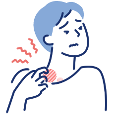 汗をかきやすく蒸れやすい、首回りや胸元、背中、わきの下などに赤いぶつぶつができます。炎症を起こし、かゆみが出ることもあります。