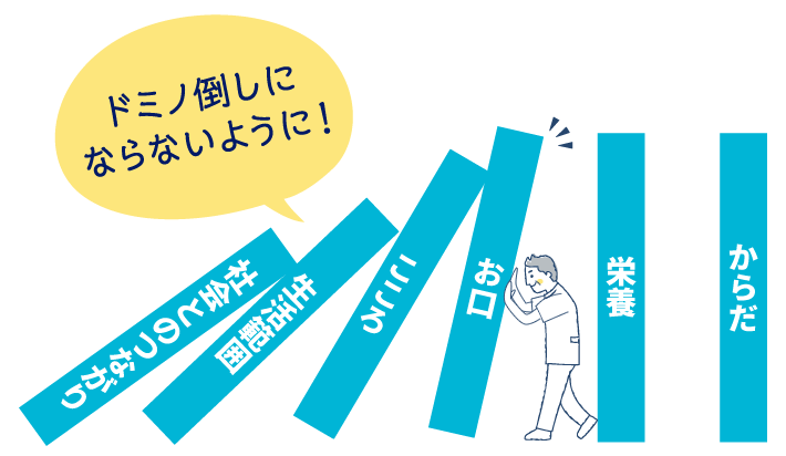 今回はフレイルドミノの流れを止められるよう、お口のフレイル「オーラルフレイル」についてご紹介します。