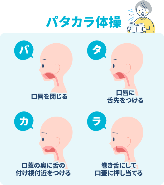 「パタカラ」はたった4音で、食べる・飲み込む時に使う舌や唇の筋肉をまんべんなく使うことができます。