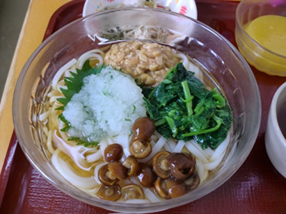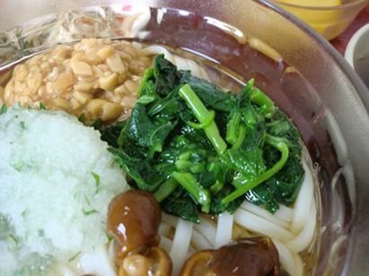 うどんのトッピングには、納豆・なめこ・大根おろし・大葉☆
