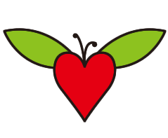 触角のようなものがハートの上部から出ていますが、微妙に左の方が長くなっています。