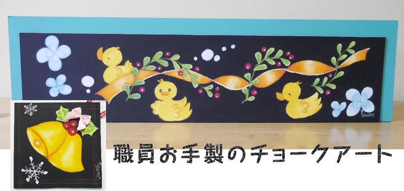 クリニック内には、医事課職員がご来院される皆さまに、笑顔で元気でいてほしいと願い、きれいなお花や職員手作りのチョークアートを飾って、いつもお待ちしております。