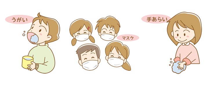 インフルエンザ感染症のように、予防接種があるわけではないので、通常の感染症と同じく、手洗い・うがいをしっかり行っていただくのが大切です。