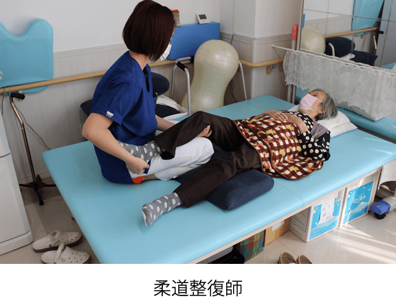 「デイサービスくさばな」では、膝や腰が痛いなど、疼痛緩和をご希望される方には、柔道整復師が疼痛緩和のご対応させていただきます。