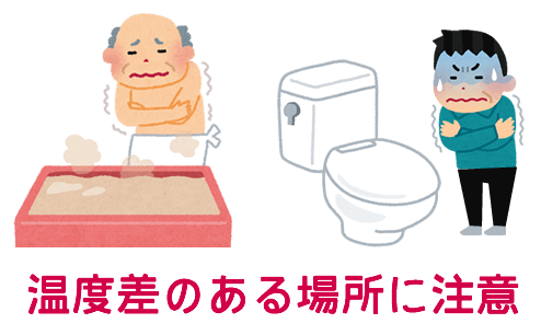 冬に暖房や防寒が不十分な場合ほど、心臓や血管の病気による死亡率が高くなるとの報告もあり、特にトイレや浴室、脱衣所など温度差ある場所には注意が必要です。