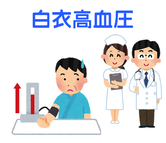 白衣高血圧は、家庭で測定した時の血圧は正常なのに、診察室での血圧は高くなることを言います。これは医師や看護師さんの白衣を見ることで緊張してしまい、血圧が高くなることが多いことからそう呼ばれています。